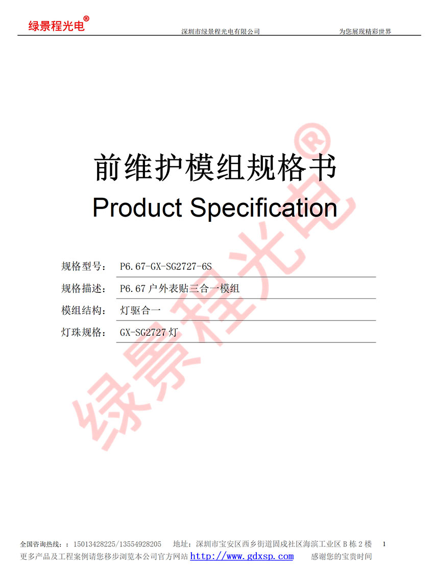 綠景程光電戶外前維護(hù)P6.67-SMD-GX-SG2727-6S-320X320mm
