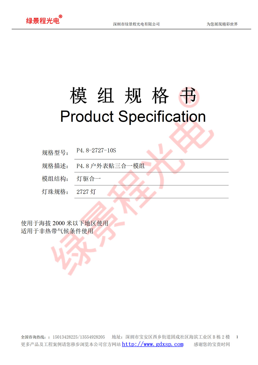 綠景程光電戶外P4.8-SMD2727-10S-192X192mm