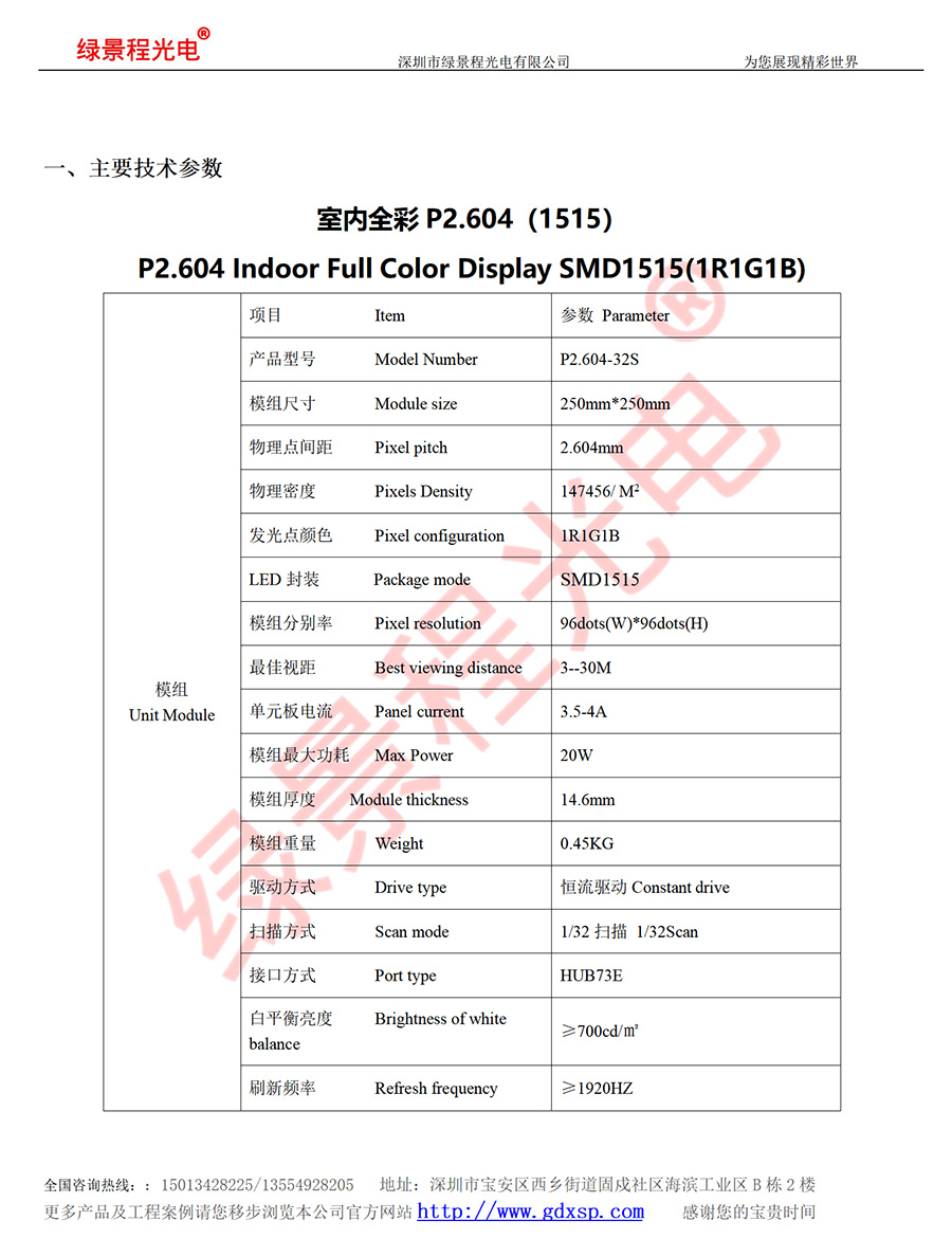 綠景程光電室內(nèi)P2.604-SMD1515-32S-250X250mm