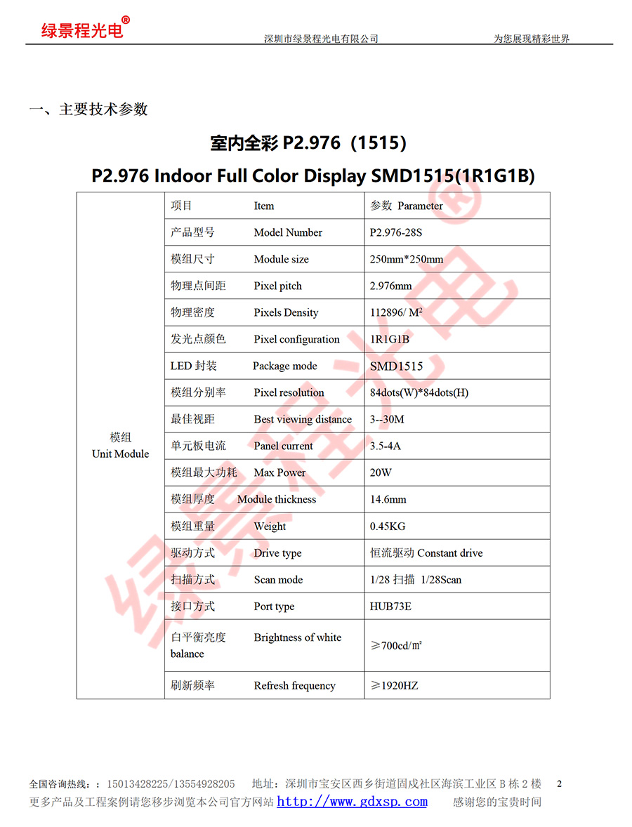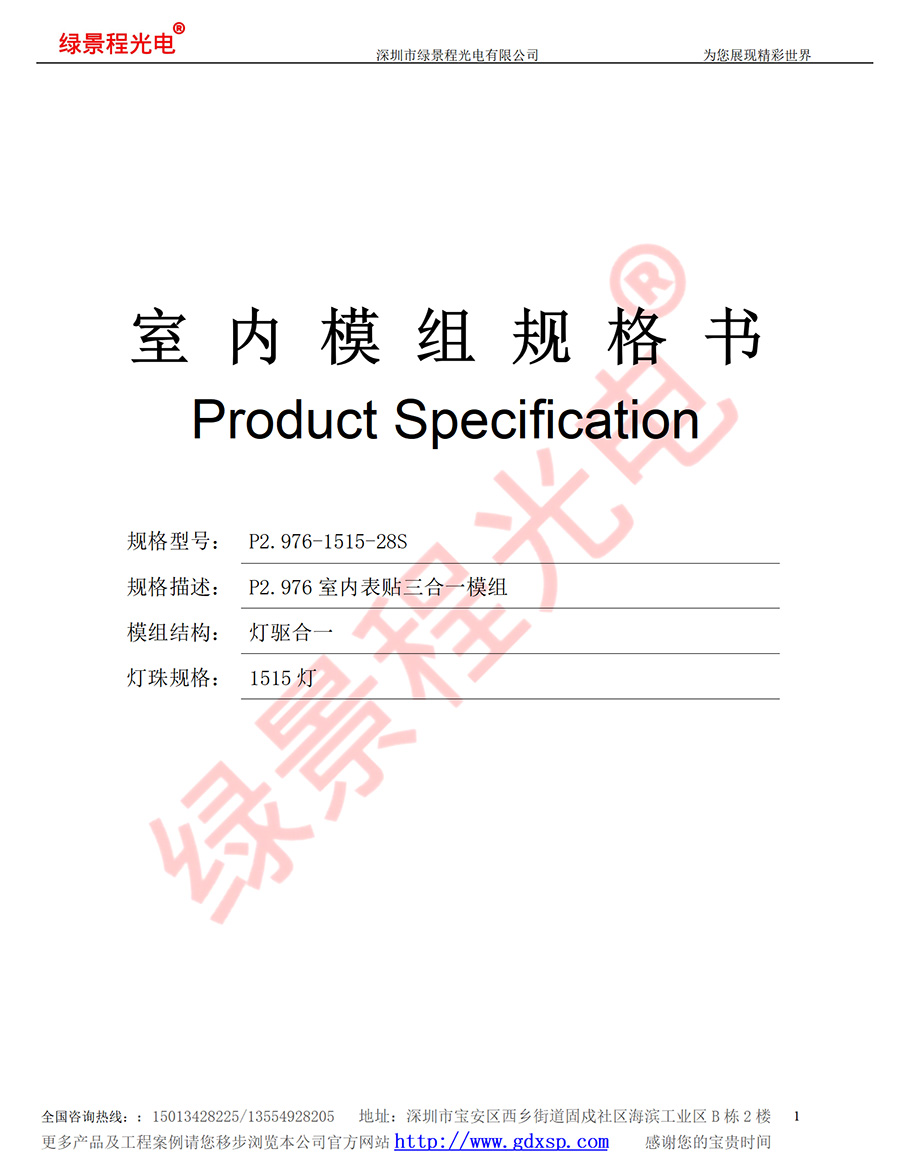 綠景程光電室內(nèi)P2.976-SMD1515-28S-250X250mm